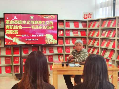 3月20日下午5:00,在众多师生的期待下,红色专题知识系列讲座在图书馆三楼“红色阅读角”如约拉开帷幕,由马克思主义学院院长姜献生教授专题讲授。(张新玲摄)