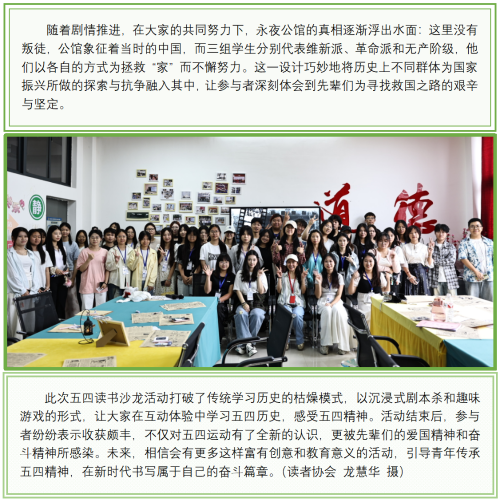 图书馆举办“沉浸式体验,回溯百年风云”五四青年节主题读书沙龙活动