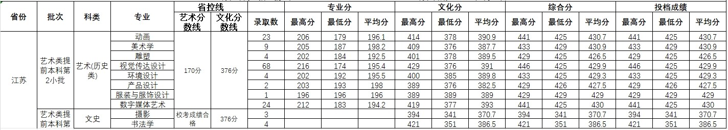 2023年江苏 艺术类录取情况