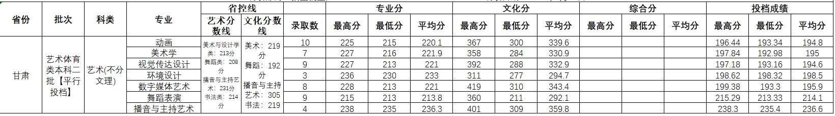 2023年甘肃 艺术类录取情况