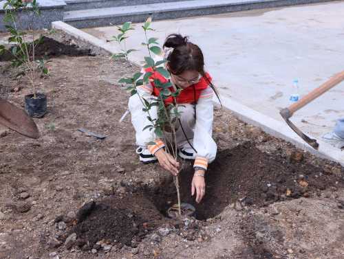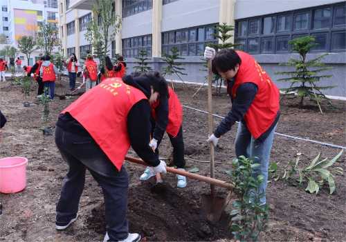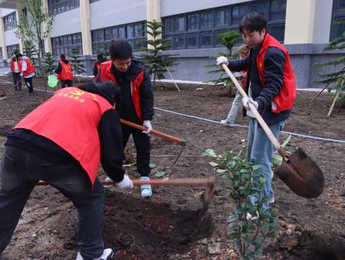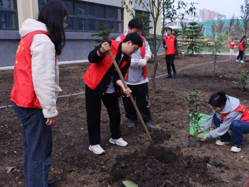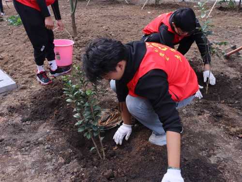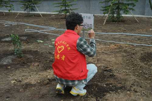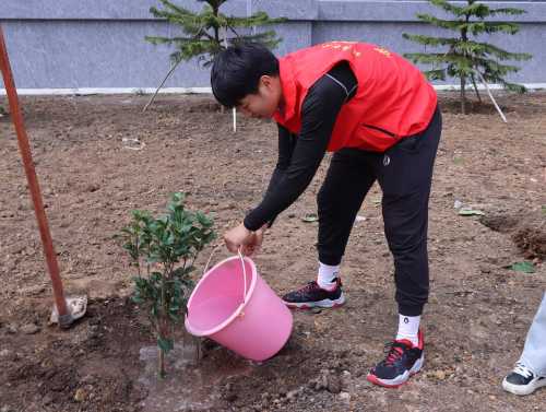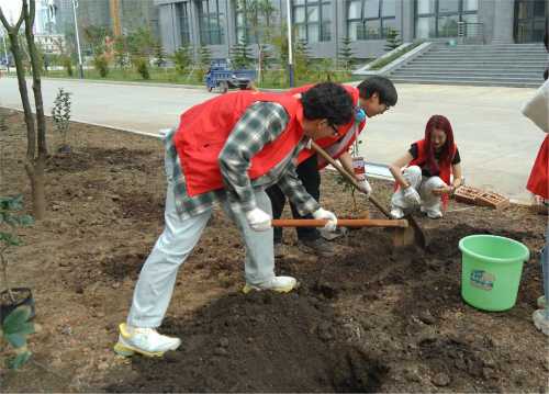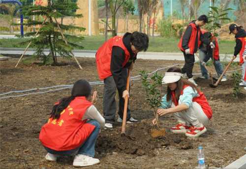 志愿者们植树的背影组成了校园中一道靓丽的风景线,一棵棵小树苗被栽下,南校区被一点点新绿缀满,同学们也在植树的过程中了解到许多有关树木的知识,认识到树木对于环境的重要。