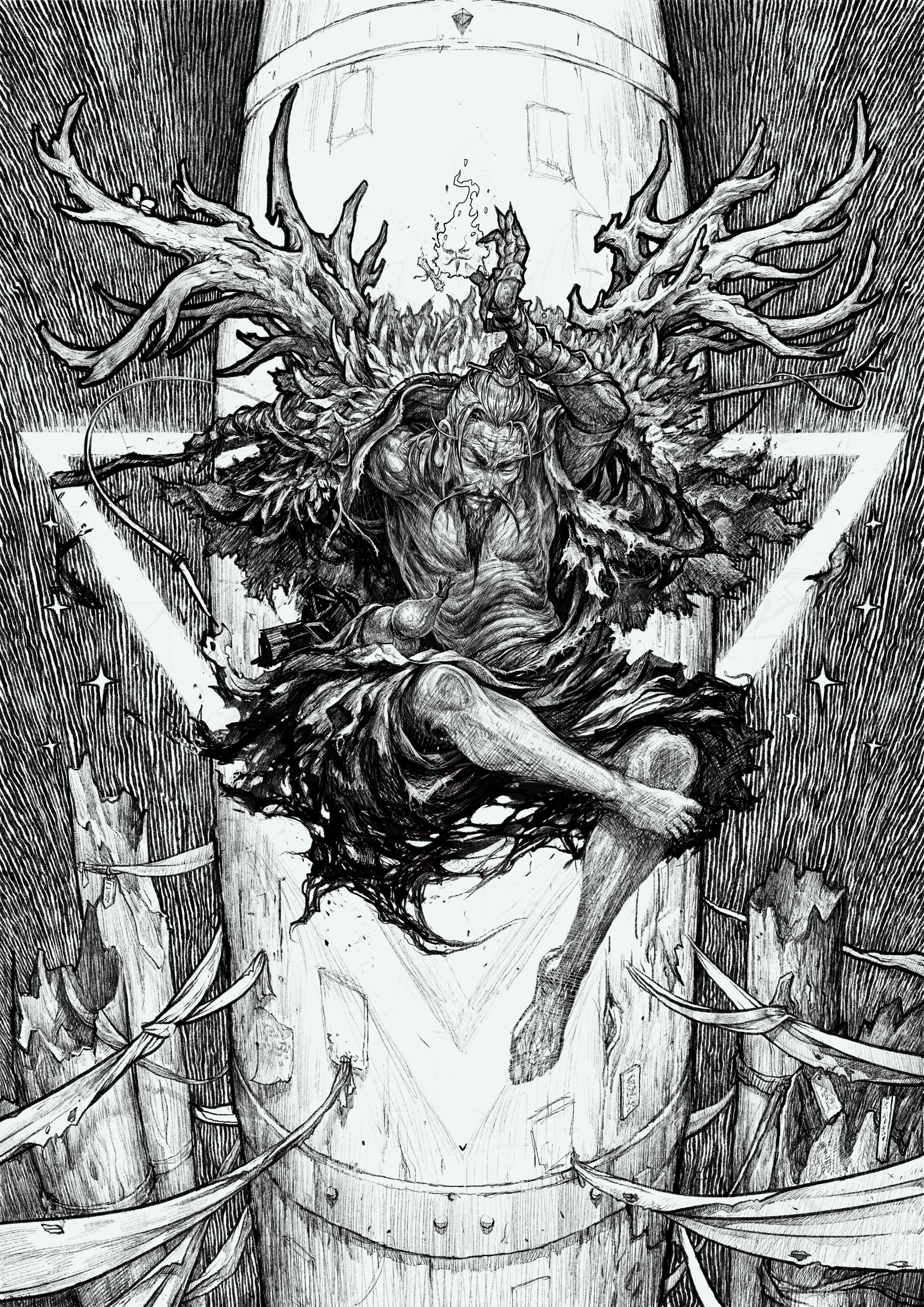 在圆珠笔绘制的纸笔空间中寻求无法改变一次成型的过程中,寻找空间与想法上的多层次多次元空间共存与展示,在二维与三维之间寻找平衡点,在线条的空间描写中寻找卡通与写实的共存,建立光影与平面的层次融合。