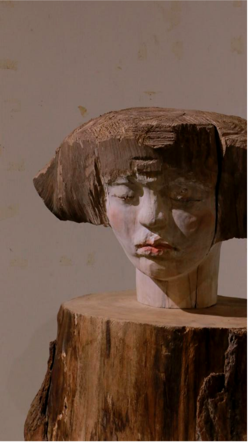 代表作雕塑《望春》(木 55×40×60cm 2023年)