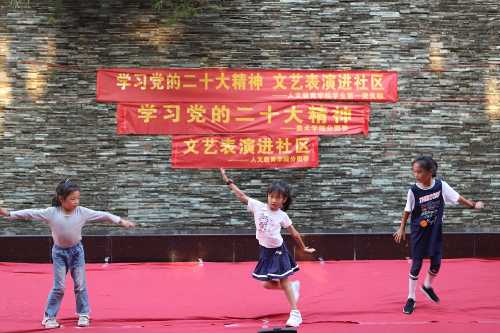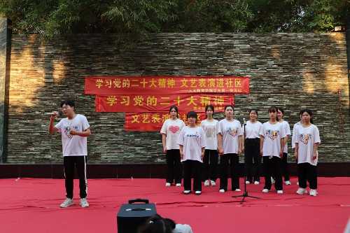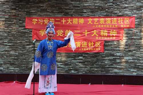 本次活动由人文教育学院党员、师生共同参与,通过发挥学院师生的专业特长,以歌舞、戏曲、朗诵等老百姓通俗易懂、喜闻乐见的文化艺术表演形式,向社区群众宣传党的二十大精神,唱响时代主旋律,进一步激励广大人民群众坚定不移跟党走,为新时代幸福生活接续奋斗的理想信念。