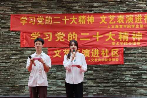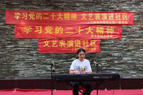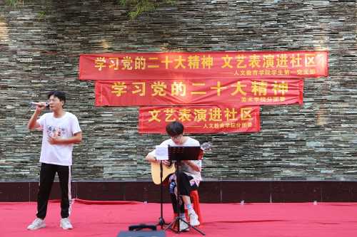 为深入学习党的二十大精神,10月28日下午,我校人文教育学院学生第一党支部和人文教育学院分团委协同合作在橄榄苑小区举办了“学习党的二十大精神,文艺表演进社区”主题党日活动。