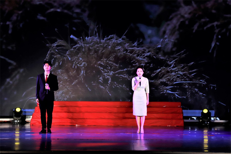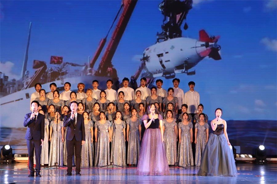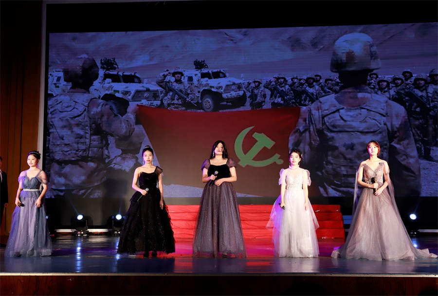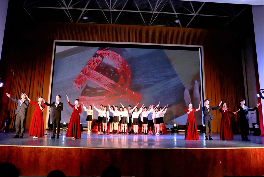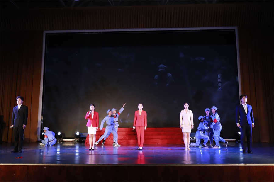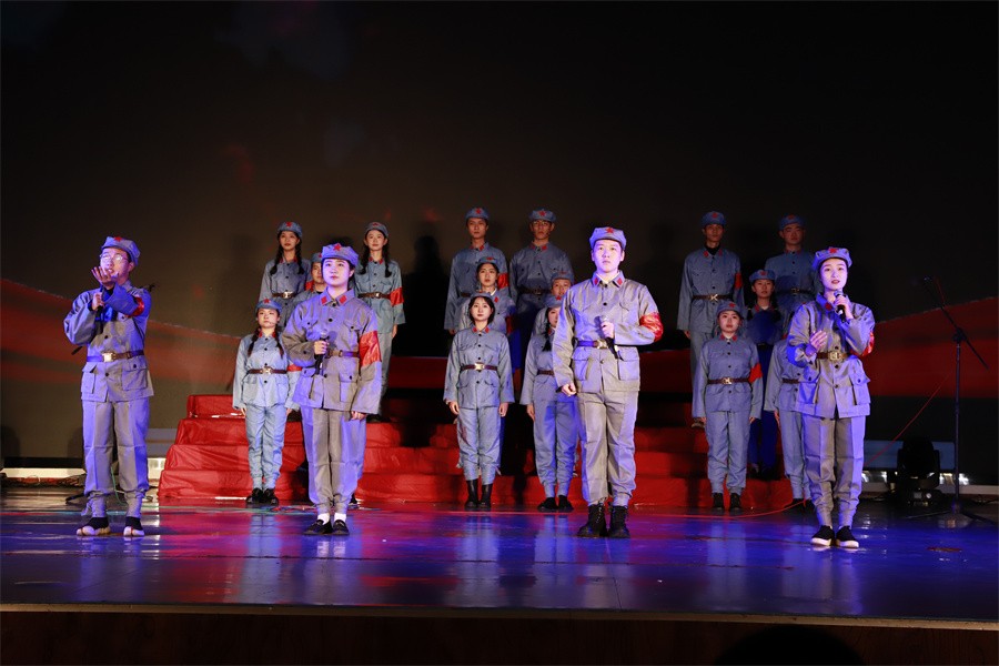第三篇章“砥砺奋进新征程”,展示了党的十八大以来中国特色社会主义建设取得的伟大成就,以及党的二十大胜利召开具有的重大意义。《中国这十年》节目由马克思主义学院覃家惠教授结合党的二十大报告精神,生动展示了中国这十年取得的历史性成就和发生的历史性变革,使在场师生进一步增强民族自信心和自豪感,坚定实现中华民族伟大复兴中国梦的志气、骨气、底气。歌曲《领航》表达了师生们对中国共产党的深厚情感,对实现国家富强、民族振兴、人民幸福的坚定信心。集体诵读《请党放心强国有我》表达了北艺学子坚定理想信念,矢志拼搏奋斗,不断砥砺奋进的铿锵誓言。