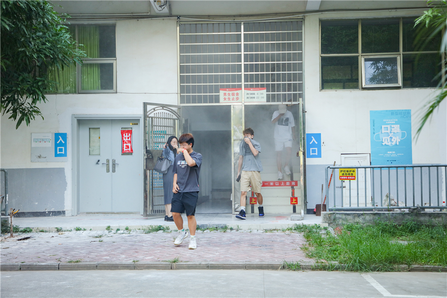 党委书记张阳下达演练指令后,安全疏散演练紧急警报响起,在班主任和宿管工作人员的引导下,同学们立即有序疏散,有序、快速疏散到指定位置。