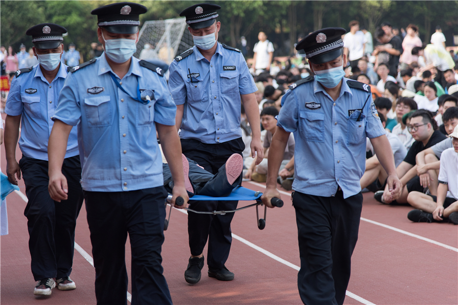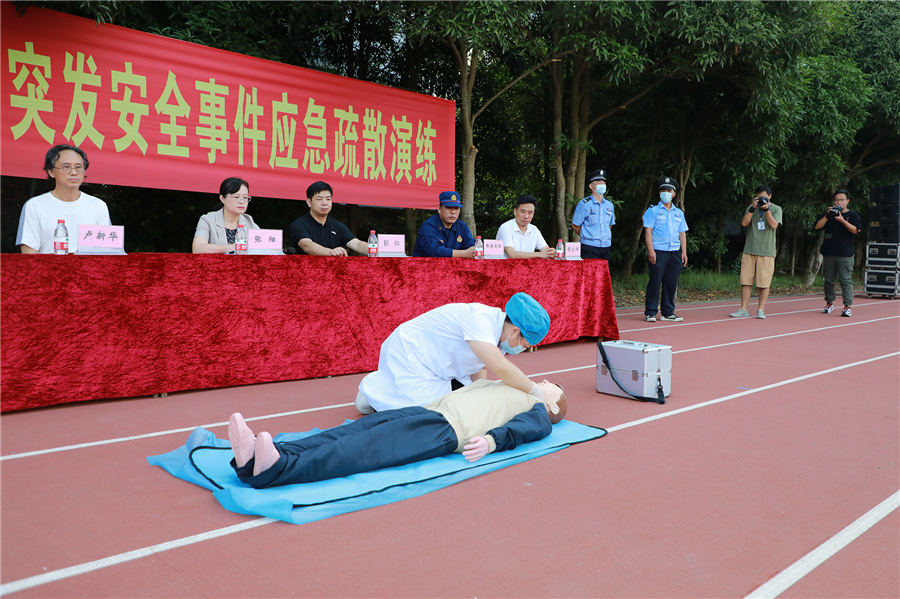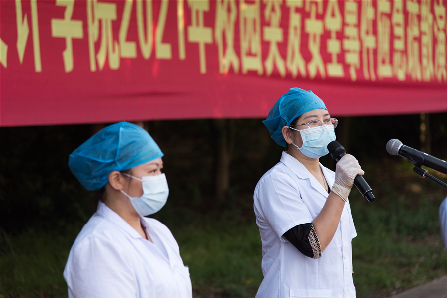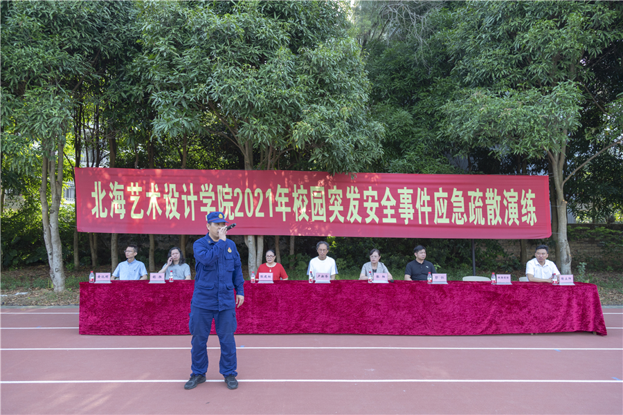 为进一步加强我校师生应对突发事件的能力,减轻突发事件带来的伤害。防患于未然,共同打造安全校园。我校于2021年6月8日在东区操场举行突发事件应急演练。学校党委书记张阳,校长卢新华,党委副书记兼副校长彭仁,党委副书记韦静月,副校长张建虹、胡胜、陶立阳、黄侃明,银海区消防救援大队宣讲员现场指导并全程观摩。本次活动由保卫处处长韩传杰主持。