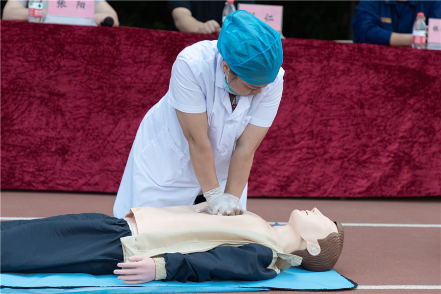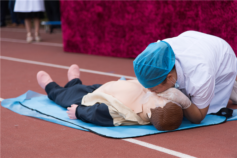 在突发事件来临时,不可避免的会发生有人员受伤的情况,掌握正确的救护手段,可以提高救亡速度。学校医务室医生现场普及心肺复苏的知识以及演示心肺复苏的步骤。
