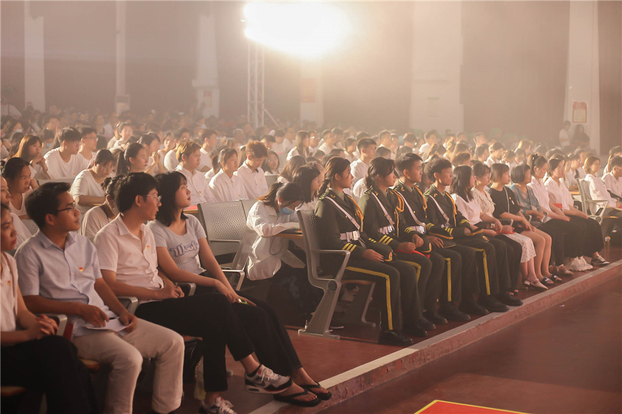 我校有一批先进的老师、学生积极向党组织靠拢,在建党100周年来临之际,他们光荣地加入了中国共产党。新党员宣誓老党员重温入党誓词仪式将本次晚会推向高潮,学校党委书记张阳带领全体党员宣誓,铿锵有力的誓言,表达了党员们不忘初心,牢记使命,对党的无限忠诚,对人民无比热爱。全体党员将积极投身中华民族伟大复兴的壮美事业中去,为党的教育事业奋斗终身。