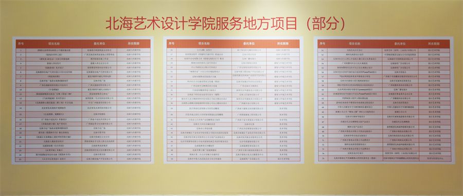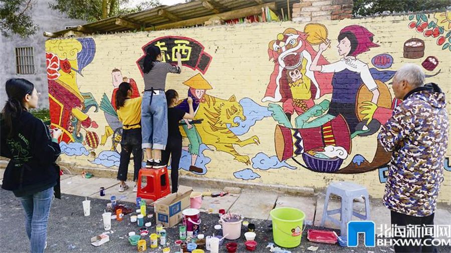 依托艺术专业优势,先后参与了北海赤西村、疍家小镇等多项城乡彩绘工程,为北海创城及多家政企事业单位提供品牌、宣传及导视系统设计方案,以设计助力北海精神文明、文化旅游发展及乡村振兴建设。