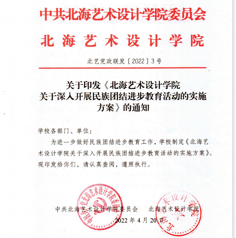 学校印发《北海艺术设计学院关于深入开展民族团结进步教育活动的实施方案》