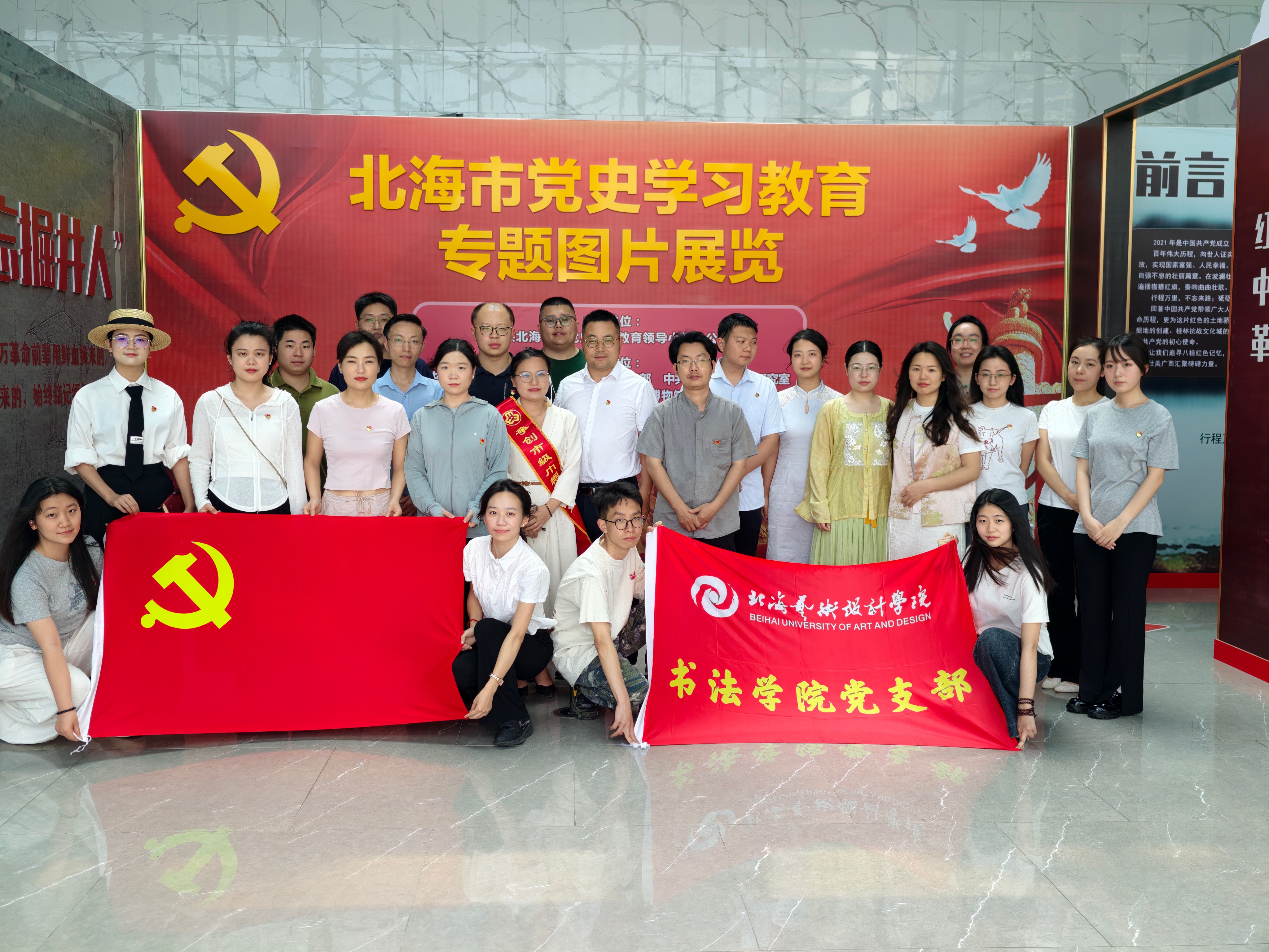 2026年3月27日下午,北海艺术设计学院书法学院全体师生党员走进北海市博物馆,开展主题党日活动,在党史学习教育专题图片展览中回望百年峥嵘岁月,于铮铮誓言中叩问入党初心。