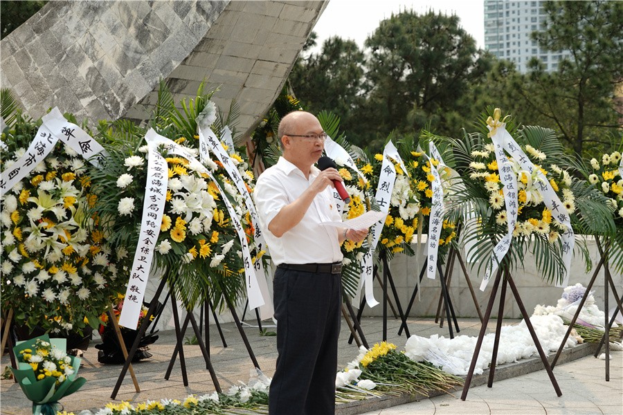 学校党委书记李高南讲话中指出,曾经的无数先烈用生命换来现在的幸福生活,他们的精神值得我们永远景仰和学习,我们要在习近平新时代中国特色社会主义思想指引下,认真贯彻落实党的十九届五中全会精神,为社会主义现代化建设不懈努力。烈士忠魂千秋在,革命精神代代传。今天的北海,正处于历史上最好的发展时期,今日在此纪念、缅怀先烈,我们将继承先烈遗志,时刻铭记历史使命,勇接社会主义现代化建设的接力棒,发扬革命传统和精神,团结奋斗,开拓创新,为社会主义现代化建设做出积极贡献。