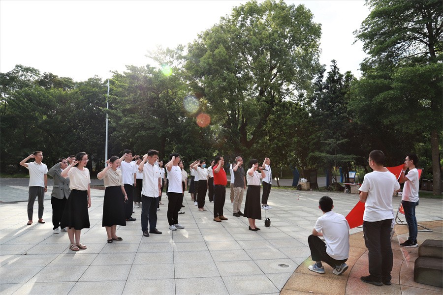 在园博园清风馆,大家佩戴党员徽章,面向党旗,在张阳书记的领誓下重温入党誓词,铿锵有力的誓言声回荡在廉政广场的上空,表达了党员们坚守理想信念、践行使命初心,对党忠诚、奋斗终身的坚定决心和实干情怀。