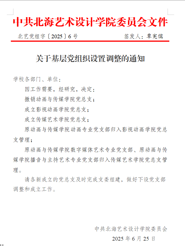 北艺党组字〔2025〕6号 关于基层党组织设置调整的通知
