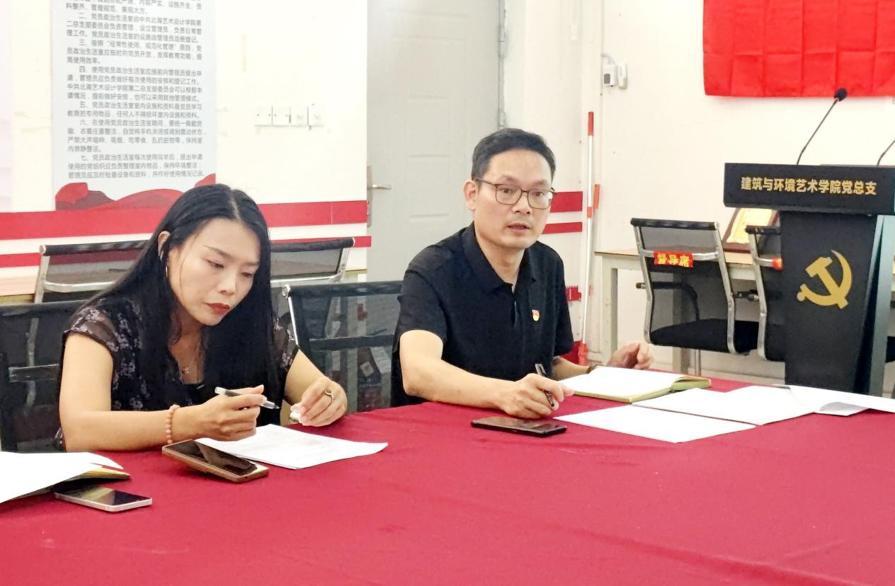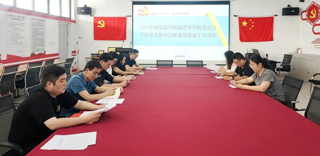 为推进学院党建工作高质量发展,2026年4月9日上午10:30,中共北海艺术设计学院建筑与环境艺术学院党总支委员会在公德楼507召开“2025年度建筑与环境艺术学院党总支下设党支部书记抓基层党建工作述职报告会”。本次会议由第二党总支书记庞定坤主持,参会的总支委员、党支部书记及党员代表共计11人。