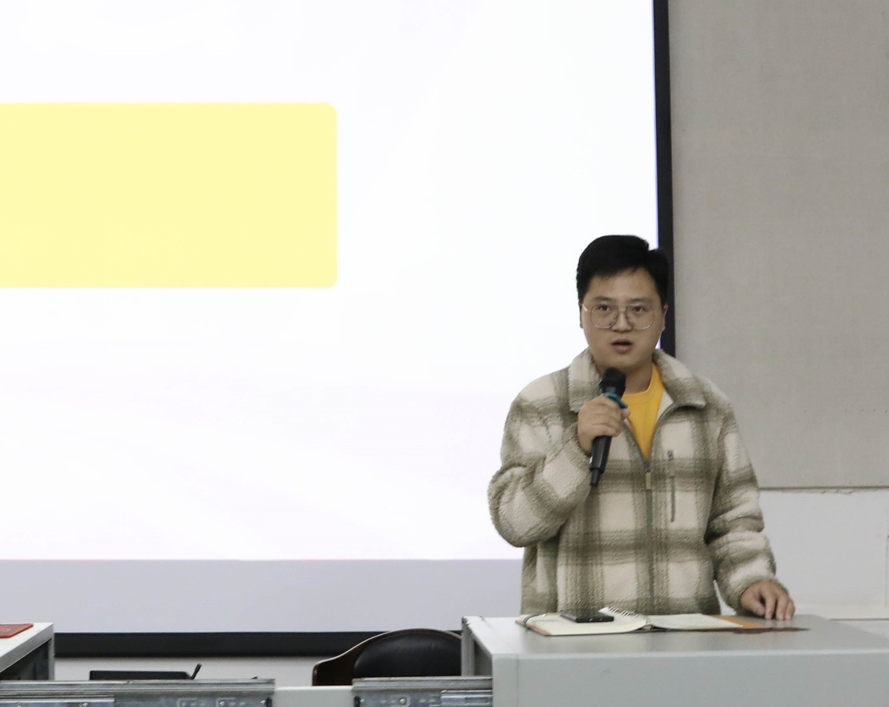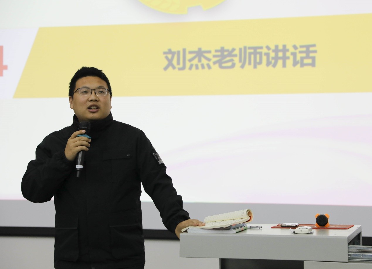 大会第四项,建筑与环境艺术学院分团委指导老师刘杰发言。首先他对即将举办的几次活动进行了详细说明,并希望同学们在积极参与的同时提出自己的建议。最后他指出学生会成员应提高工作的积极性、主动性,同时也应注重团体协作,分工合作。