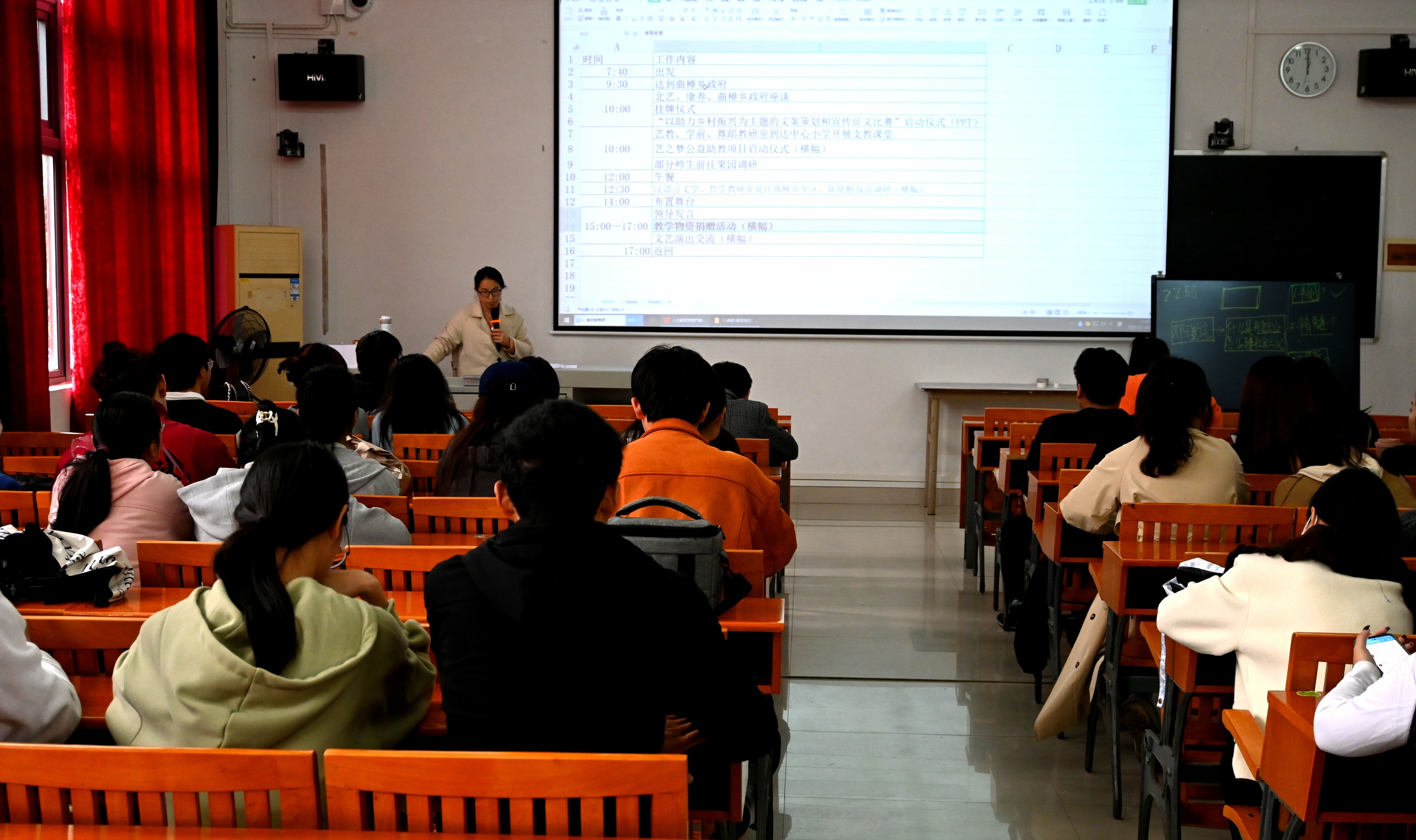 为保证曲樟乡教学实践活动的顺利开展,人文教育学院于3月30日中午11:40在伦理楼101召开曲樟乡教学实践系列活动动员大会,人文教育学院党总支书记、院长熊秀峰主持并讲话,学院领导班子成员及汉语言文学、哲学、艺术教育、学前教育、舞蹈表演教研室负责人、分团委以及参与活动的学生参加了本次动员大会。