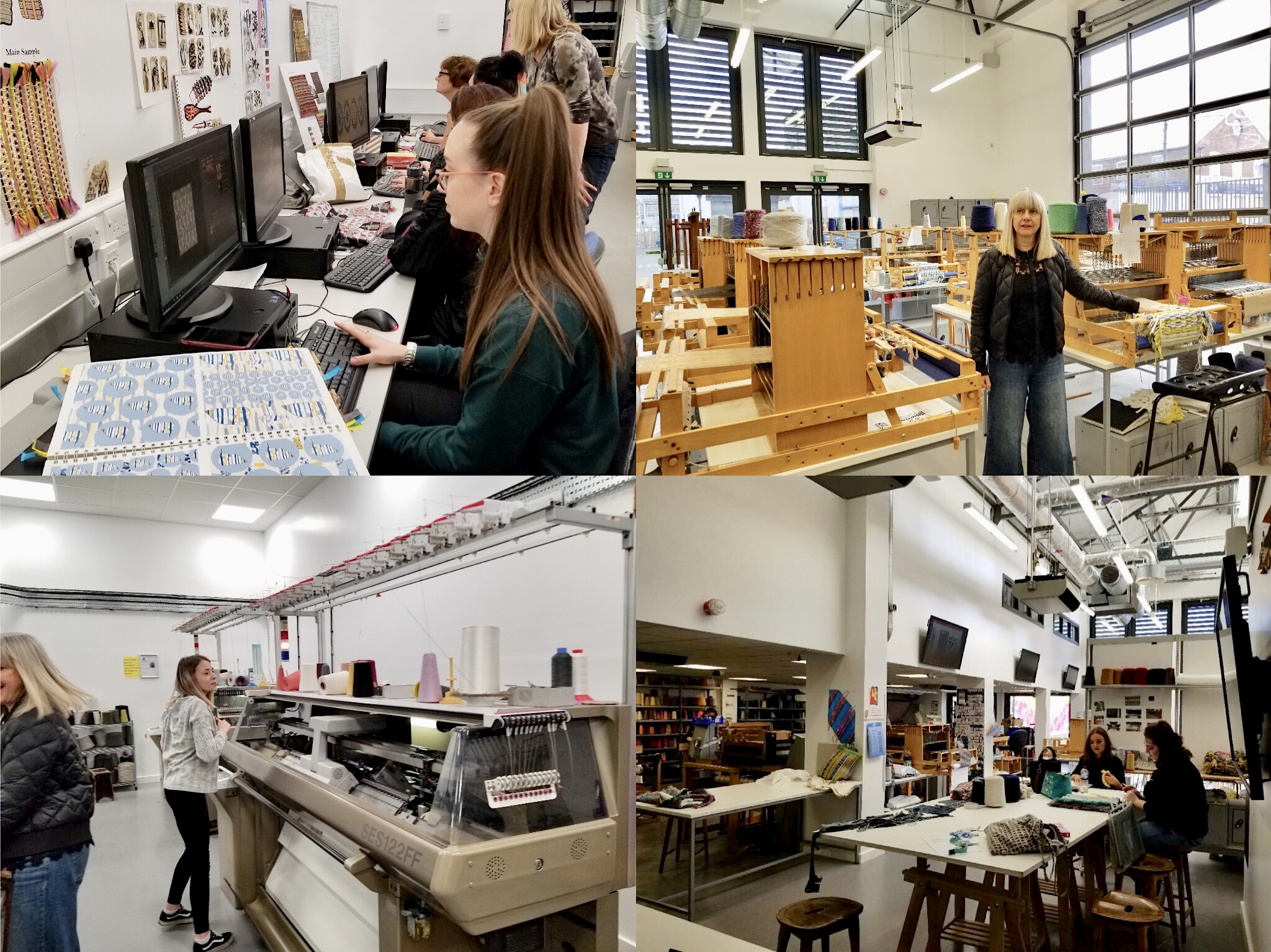 (代表团在Kay女士陪同下参观服装设计与纺织系的工作室,并和专业教师以及学生亲切交流)