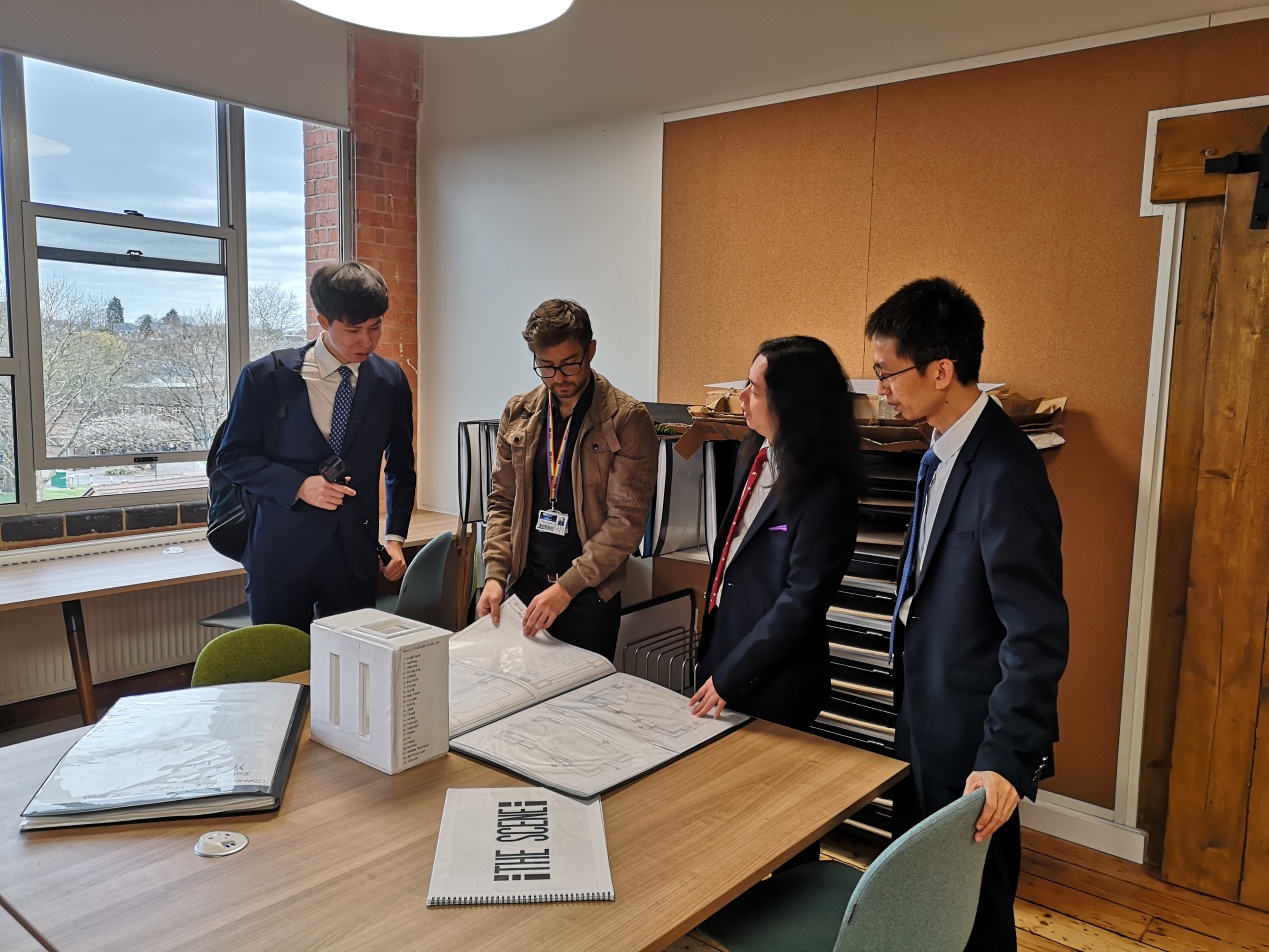 (代表团在环艺设计系主任 Mr. Barend陪同下,参观英国德比大学图书馆、环艺设计系实训室和教室)