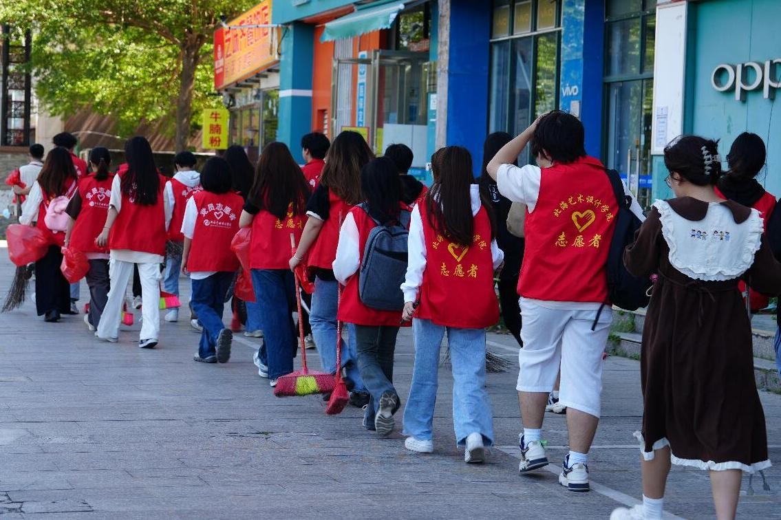 各班级团支部的同学们迅速分组。有的小组负责清扫社区道路,确保路面干净整洁;有的小组负责则深入绿化带,仔细捡拾垃圾。