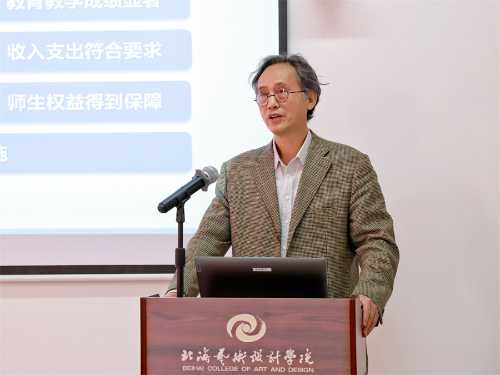 校长卢新华代表学校对年检专家组一行的到来表示欢迎和感谢,并在党建思政工作、基本办学条件、学校领导体制、教育教学规范、财务管理制度、师生权益建设等方面作了汇报。卢新华指出,学校以习近平新时代中国特色社会主义思想为指导,坚持社会主义办学方向,立德树人为根本任务,全面学习宣传贯彻落实党的二十大精神。为全国文化艺术行业和地方经济社会发展培养了大批高素质应用型人才。学校实行北海北京双城育人、坚持以名校名师引领,建校以来从清华大学聘任了三任校长;从清华大学、中央美术学院等名校选聘名师任二级学院院长、各专业带头人;创建“名师大讲堂”,先后邀请国内外名校、科研院所和行业企业名师工匠、专家300多人来校进行讲学交流、教学和办学指导。办学效果显著,2022年8月在中国高等教育学会首次对外发布的《全国普通高校大学生艺术类竞赛总榜单》中,我校以获奖数158项进入等级A,在全国1098所本科高校中排名前33,名列全国民办高校第2。2022年度学校荣获“全国高校设计赋能乡村振兴志愿者服务先进单位”“全区普通高校毕业生就业工作突出单位”“广西壮族自治区绿色学校”等称号。