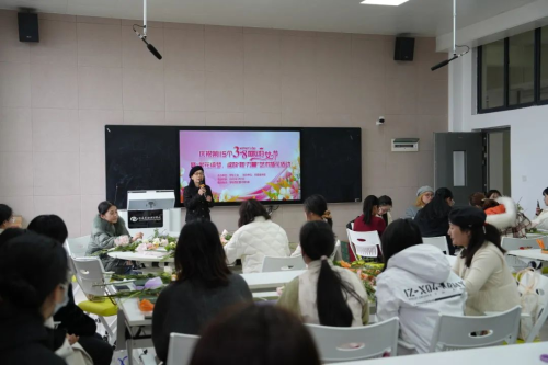 为庆祝第115个“三八”国际妇女节,弘扬新时代女性风采,丰富校园文化生活,3月7日下午,学校工会联合党委宣传部在西校区图书馆五楼举办“繁花绮梦,绽放‘她’力量”艺术插花主题活动。学校党委副书记陈毅华,党委委员、党委宣传部部长文春明,女教职工委员会主任、设计艺术学院副院长李佩出席活动,学校百余名女教职工齐聚一堂,以花为媒,共赴一场艺术与美的春日之约。