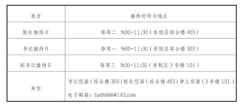 注:如遇院领导临时有事外出,会提前于学院公告栏或院长、书记办公室门口张贴调整时间通知