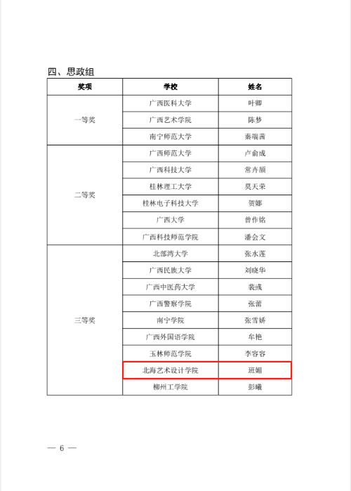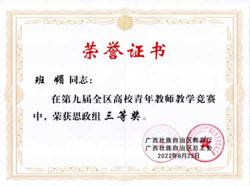 喜报:我院教师班媚荣获第九届全区高校青年教师教学竞赛思政组三等奖