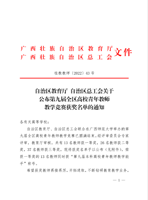 桂教教师〔2022〕43号自治区教育厅自治区总工会关于公布第九届全区高校青年教师教学竞赛获奖名单的通知.pdf