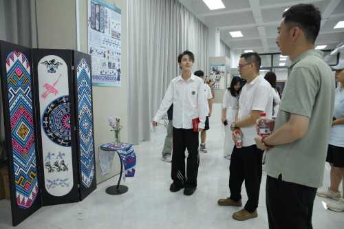 课程负责人郭蕙静在介绍中指出,《家具设计》作为创新创业必修课,引导学生以广西地域文化为土壤,深入挖掘壮锦纹案、侗族榫卯等非遗技艺基因。学生通过对旧家具、旧材料的再造,将传统文化符号融入现代审美与实用功能,创作出96件蕴含“可持续”理念的实体家具作品。现场通过家具实物与创作展板,立体呈现了从文化解码到材料再生的完整历程。