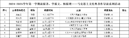 讲座预告|2024-2025学年第一学期读原著、学原文、悟原理——马克思主义经典著作导读系列活动