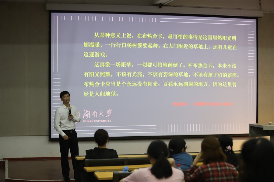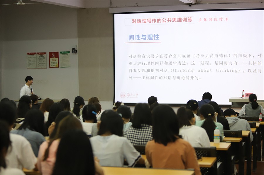 4月27日晚,于我校西校区伦理楼107,湖南大学文学院谭军武教授为我校师生带来了一场题为《当诗人遇上机器人——从写作教育看新文科人才培养的新理念》的精彩讲座,讲座由人文教育学院副院长梁镨文主持。