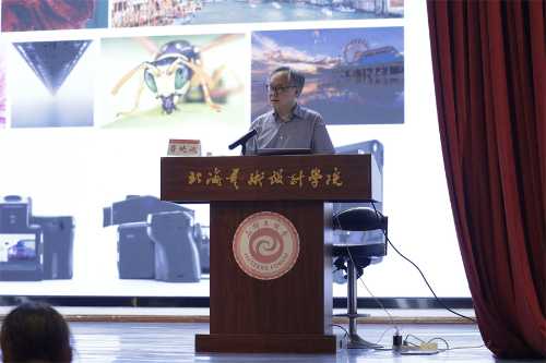 鲁晓波教授列举了达芬奇、爱因斯坦、李政道等艺术科技融合理论的重要人物事例,明确智能时代要进行人文、科技深入融合的艺术创新。他还分别从文艺复兴时期产生的艺科结合画作、自然与科学融合发展的趋势、奥运会动态标志的产生,AI3D绘画的应用等艺术与科技相辅相成共同发展的实例,指出“艺术,不会也不可能被终结”的概念,展现了艺术发展的无限可能,让在场的师生看到了艺术发展的勃勃生机。
