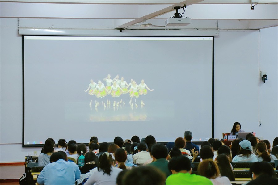 在互动环节中,现场学生就壮族舞蹈的相关问题进行踊跃提问,与付宜玲教授展开深入探讨。讲座最后,付宜玲教授现场播放了多个优秀的壮族舞蹈经典剧目,引发师生对民族文化、民族舞蹈的热情,鼓励广大学子积极推动壮族舞蹈的创新性发展,成为新时代文化的传承者和创造者。