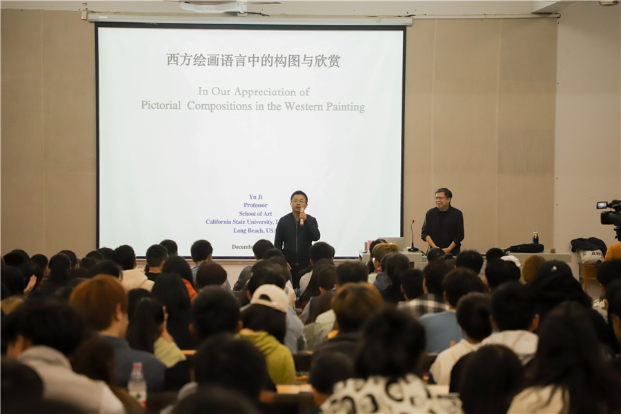 2019年12月24日19:30于我校西校区伦理楼107,加利福尼亚长滩州立大学美术系计宇教授带来了一场题为《西方绘画语言中的构图与欣赏》的精彩讲座。本次讲座由美术学院常务副院长龚为主持。