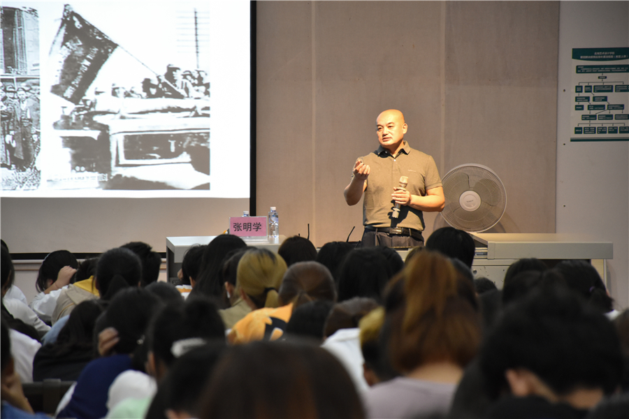 讲座开始前,张教授对现场师生表达了真挚的问候,表示非常荣幸能够再次来到北海艺术设计学院进行讲座,他鼓励同学们要认真学习,争取在学术方面更上一层楼。