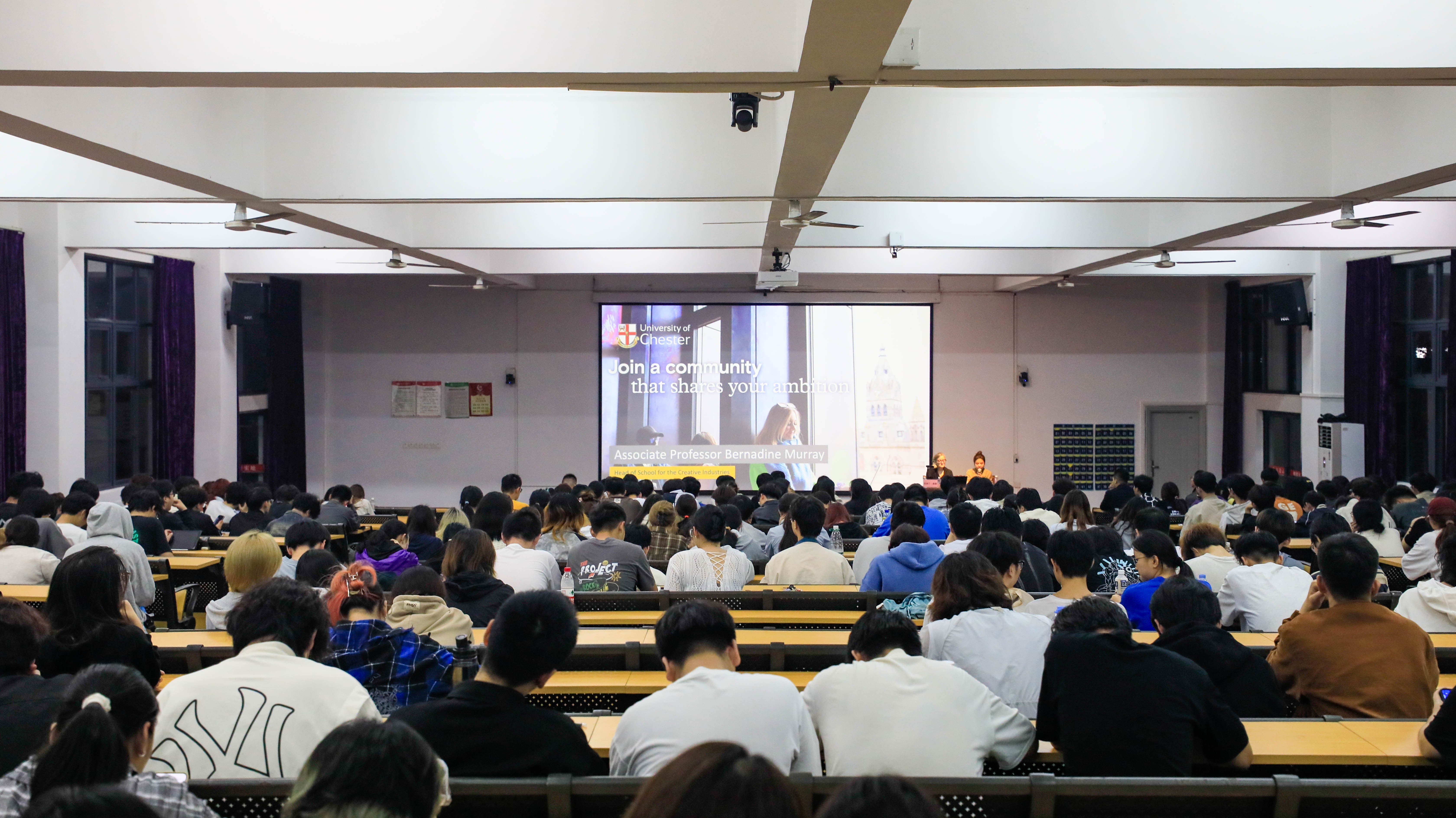 讲座最后,穆雷院长分享切斯特大学的官方微信,微博,小红书账号,并鼓励在座师生今后通过社交平台多交流。