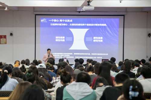 在讲座中,潘教授不仅从公共关系角度剖析了当前品牌营销的新趋势,还着重区分价值与价值观的不同。他强调,价值是品牌的硬性条件,而价值观则是品牌与消费者情感共鸣的桥梁。他鼓励我们应当秉持“创新思维”,运用创新管理的理念来重新思考品牌营销的策略。特别是在当下人工智能与互联网深度融合的时代背景下,我们更应当从“社会概念”这一角度,对营销进行重新审视和定位。