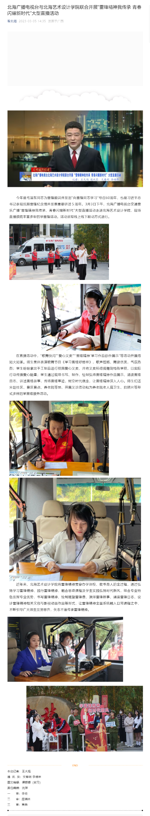 北海广播电视台:北海广播电视台与北海艺术设计学院联合开展“雷锋精神我传承 青春闪耀新时代”大型直播活动