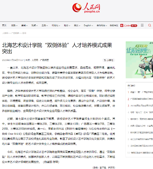 人民网:北海艺术设计学院“双侧体验”人才培养模式成果突出