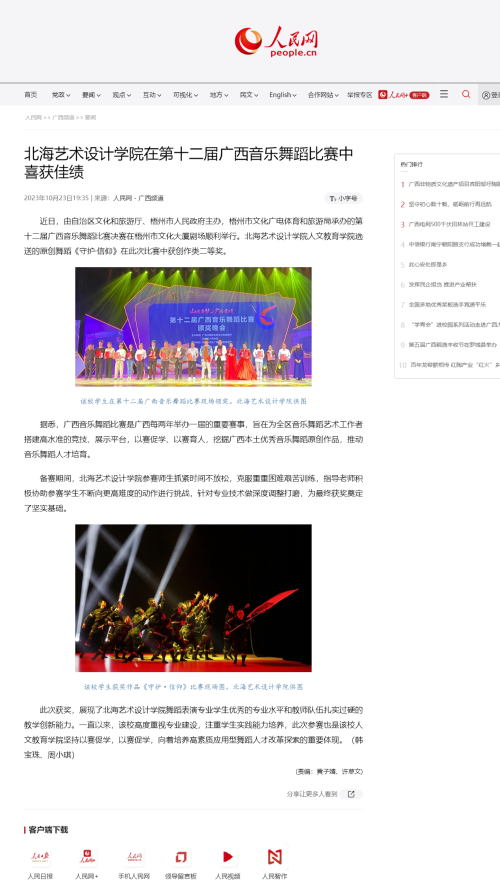 人民网:北海艺术设计学院在第十二届广西音乐舞蹈比赛中喜获佳绩