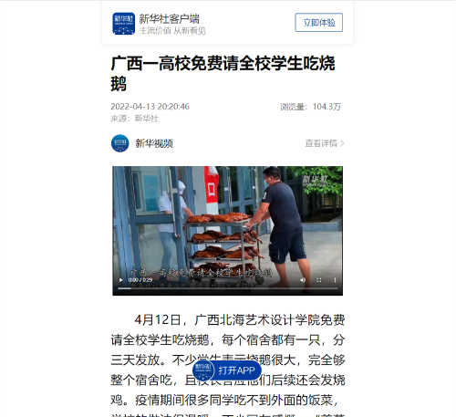 新华社:广西一高校免费请全校学生吃烧鹅
