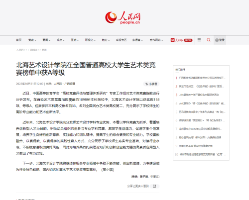 人民网:北海艺术设计学院在全国普通高校大学生艺术类竞赛榜单中获A等级
