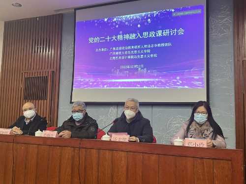 近日,马克思主义学院受邀与广西思想政治教育领军人物汤志华教授团队、广西师范大学马克思主义学院在桂林联合举办了“党的二十大精神融入思政课”研讨会。广西师范大学、北海艺术设计学院、桂林电子科技大学、福建师范大学、集美大学、广西民族大学、南宁职业技术学院等区内外多所高校70多人参加。