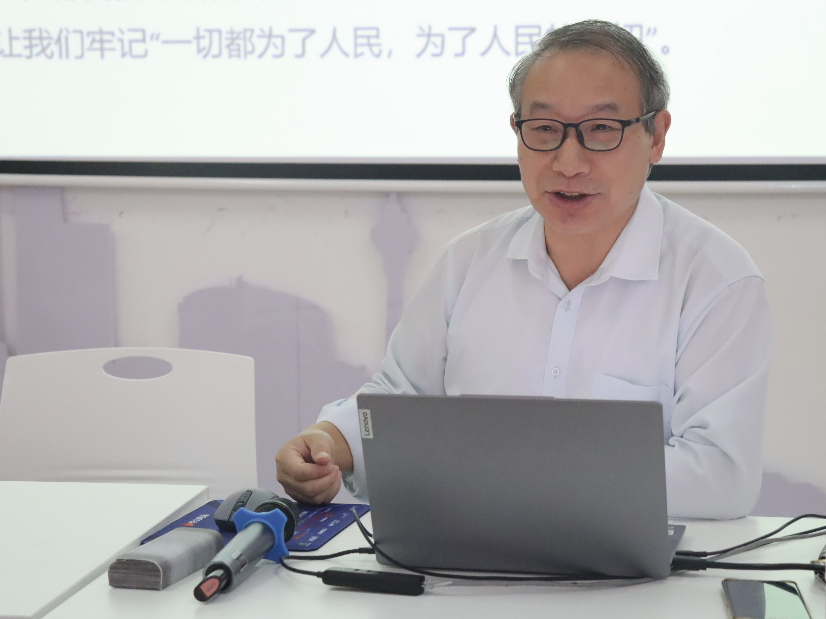 导读中,胡细木副教授以张思德同志的伟大事迹为切入,结合自身军旅生涯的亲身经历,从《为人民服务》的核心内涵、重要意义、积极践行三个方面展开,深入解析了这篇演讲的核心思想和现实意义。他强调:《为人民服务》不仅是党的根本宗旨的集中体现,更是对全体党员干部提出的实践要求,展现了中国共产党人全心全意为人民服务的初心使命。他整个讲解深入浅出、条理清晰,引导在场教师在经典中汲取智慧、坚定信念。