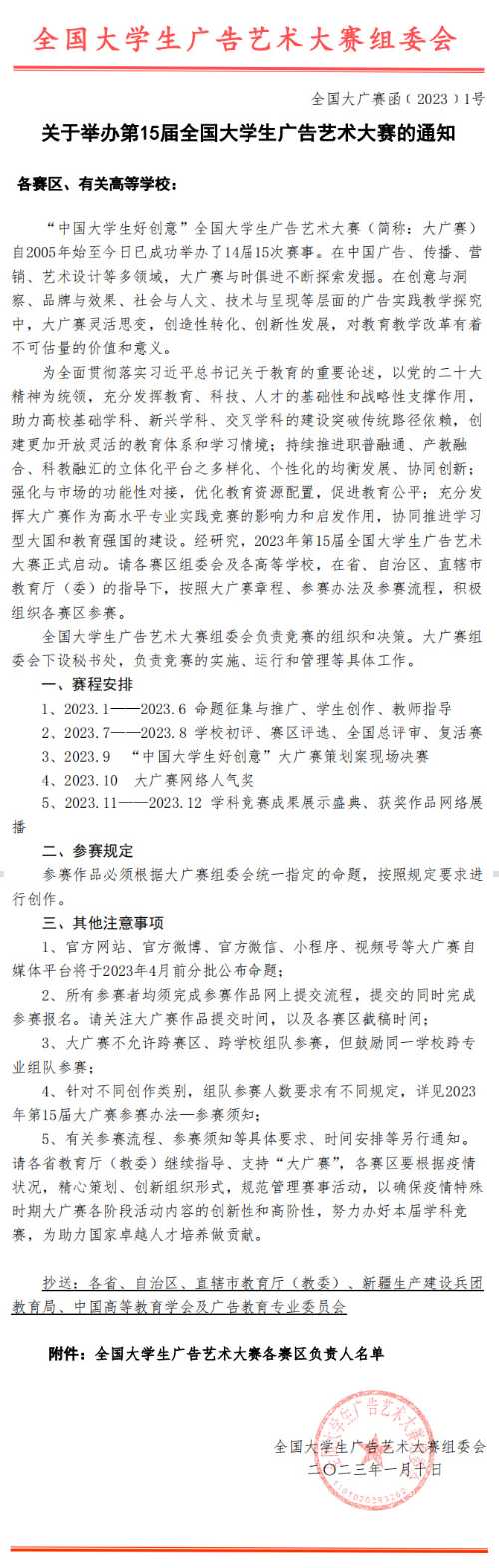 关于举办第15届全国大学广告艺术大赛的通知