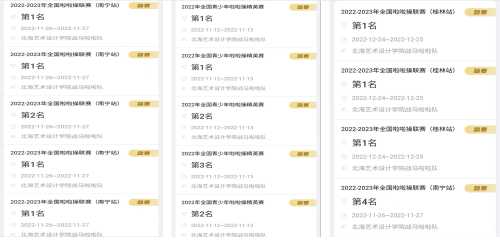 在2022年11月的“2022年全国青少年啦啦操精英赛”取得2项第一名、2项第二名、1项第三名;在11月的“2022-2023年全国啦啦操联赛(南宁站)”取得4项第一名、1项第二名、1项第四名;在12月的“2022-2023年全国啦啦操联赛(桂林站)”取得3项第一名的优异成绩!