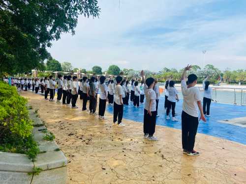 我校把八段锦项目作为体育课程特色内容进行普及,加强学生体质、增强文化自信的同时,弘扬、传承我国优秀的传统体育文化。